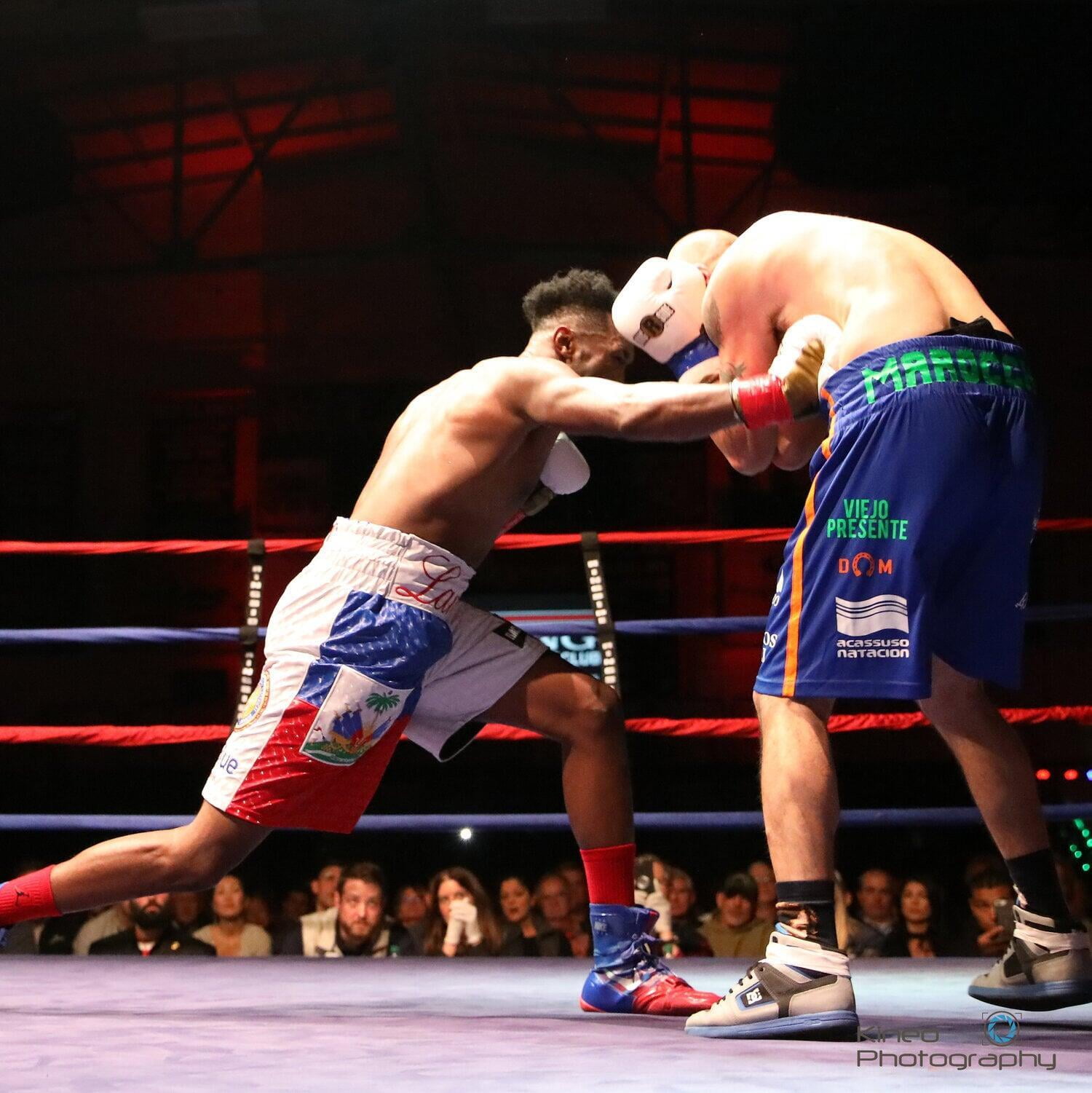Local favorite Russell Lamour, Jr, 17-3, 9 KOs, thrilled the packed Portland Expo November 9th with an exciting 3rd round stoppage over Buenos Aires’ Diego Marocchi, 18-5-1, 14 KOs in the scheduled 8 round middleweight main-event. The Argentinian started fast, moving just outside the much taller Lamour’s range, looking for counters, but showed early on that he did not have the power to keep Lamour off. Settling in for the second round, Lamour began to take advantage of his superior size and skills, with accurate jabs and body shots. By the third, a clearly out-gunned Marocchi went down twice and although he beat the count, he was clearly ready to be stopped when his cornerman threw in the towel at 1:40.