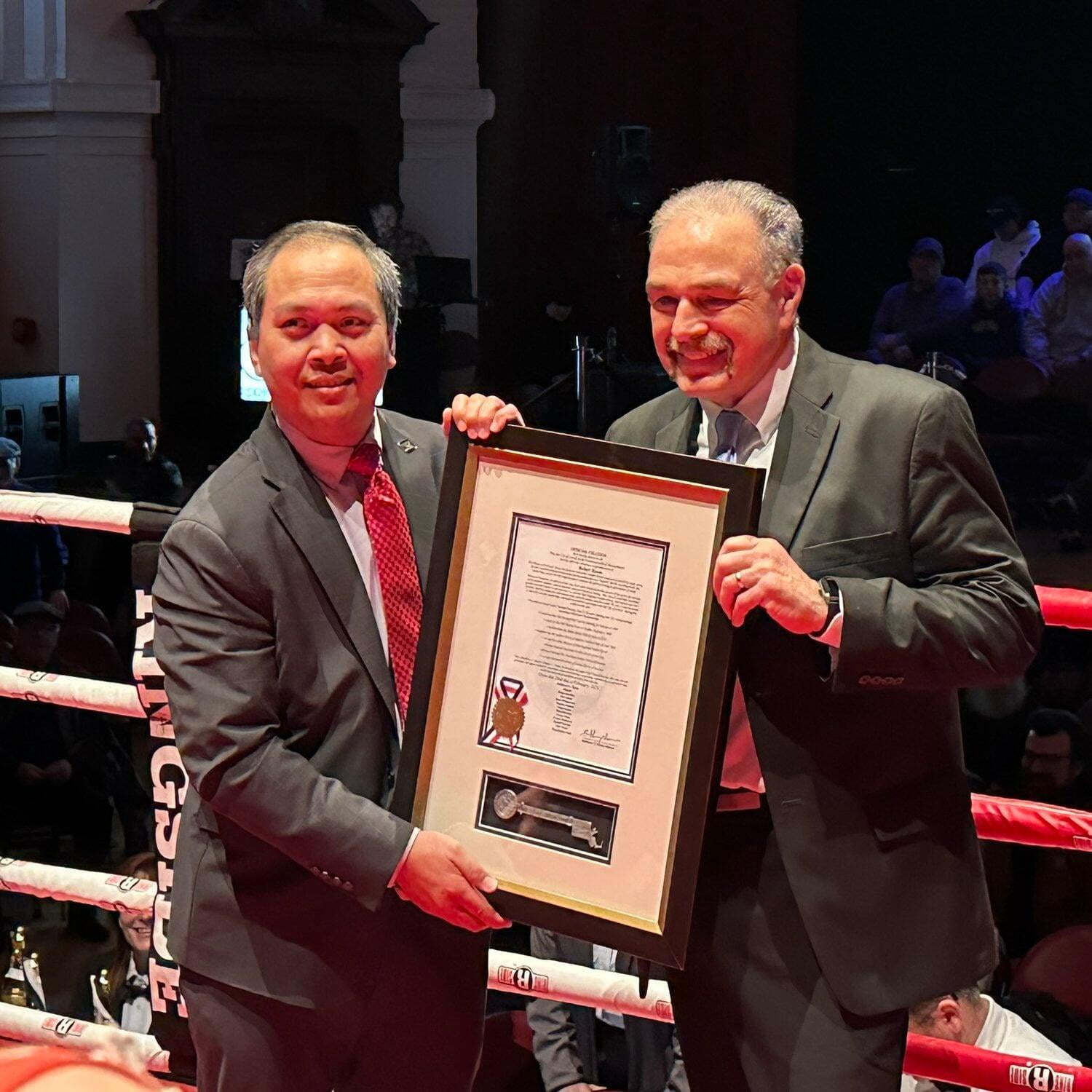 Congratulations to Portland Boxing Club’s president and head coach Bob Russo. He was awarded the key to the City of Lowell for his role as Executive Director of the New England Golden Gloves and his contributions to the sport of boxing.